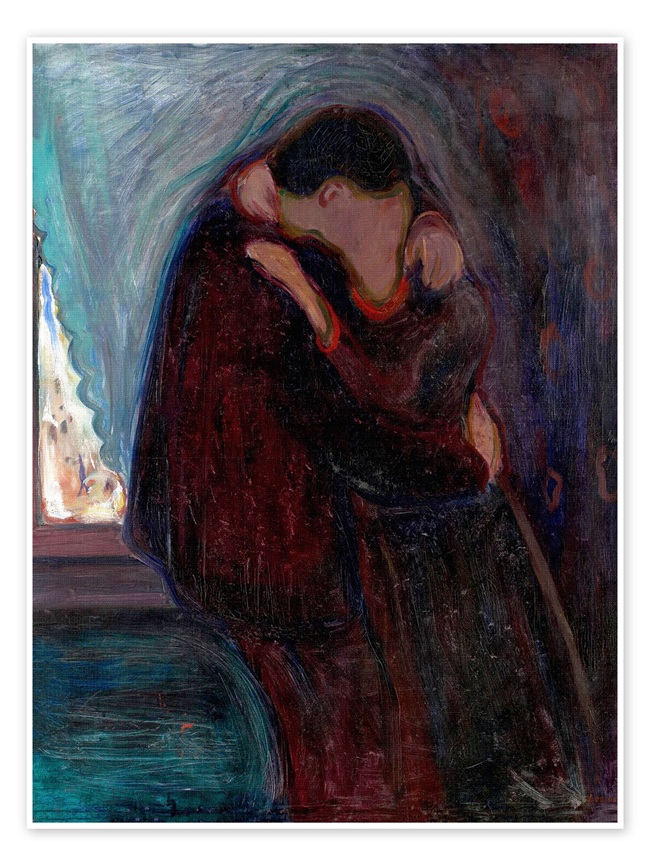 En la obra de Edvard Munch, el beso adquiere un matiz psicológico más profundo. En sus versiones de El beso, la pareja aparece tan unida que casi se funde en una sola forma, como si en ese contacto íntimo se disolvieran las individualidades, reflejando lo que el propio artista entendía como “la batalla entre hombres y mujeres, llamada amor”.